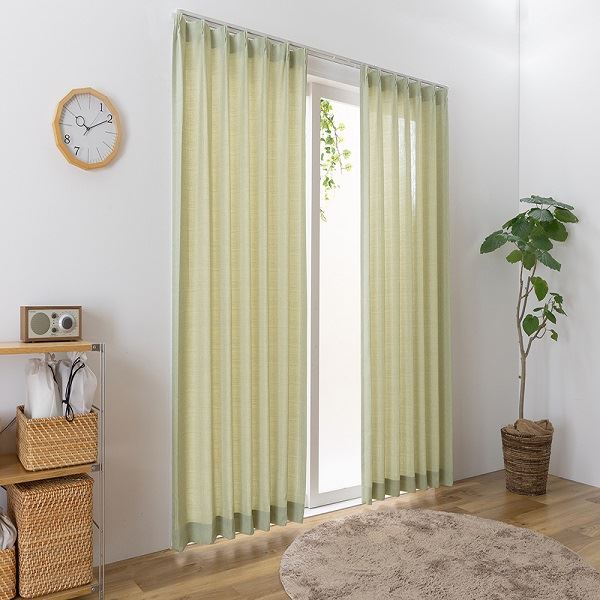 (キーワード: 高級 流行 デザイン おしゃれ オシャレ 耐久 清潔 機能 遮光 TCC328494 RDA0003589978 4162961 インテリア 寝具 カーテン ブラインド カーテン ブラインド 収納 洗えて防炎効果のある、シンプルでナチュラルなドレープカーテン ウォッシャブルでお手入れ簡単、タッセル付きでお部屋をおしゃれに演出 幅150cm、長さ205cmのグリーンカラーがお部屋に爽やかな風を運んでくれます 緑)