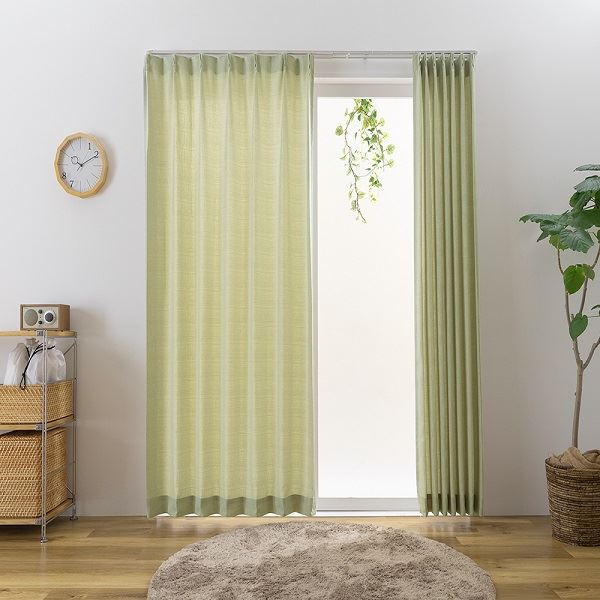 商品仕様: 日本製 カーテン ドレープカーテン 防炎 洗える シンプル ナチュラル タッセル付き ウォッシャブル【幅150cm 長さ200 cm 1枚 グリーン 緑】