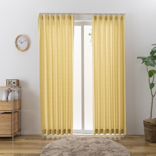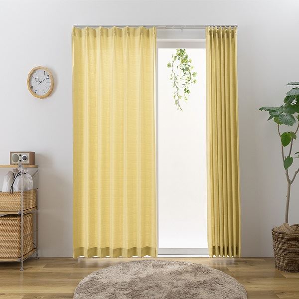 洗えて防炎効果もある、シンプルでナチュラルなウォッシャブルカーテン タッセル付きでお部屋を華やかに演出 幅150cm、長さ210cmのイエローカラーがお部屋を明るく彩ります 黄 洗えて防炎効果もある、シンプルでナチュラルなウォッシャブルカーテン タッセル付きでお部屋を華やかに演出 幅150cm、長さ210cmのイエローカラーがお部屋を明るく彩ります
