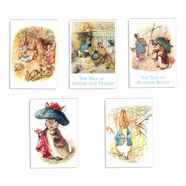 ピーターラビットシリーズのお話の中から、5つの名場面を絵はがきにしました。