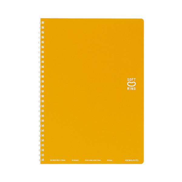 ●コクヨ独自開発の「やわらかリング」を採用したリングノートです。ドット入り罫線B罫のセミB5サイズ、表紙色はオレンジです。5冊セットです。