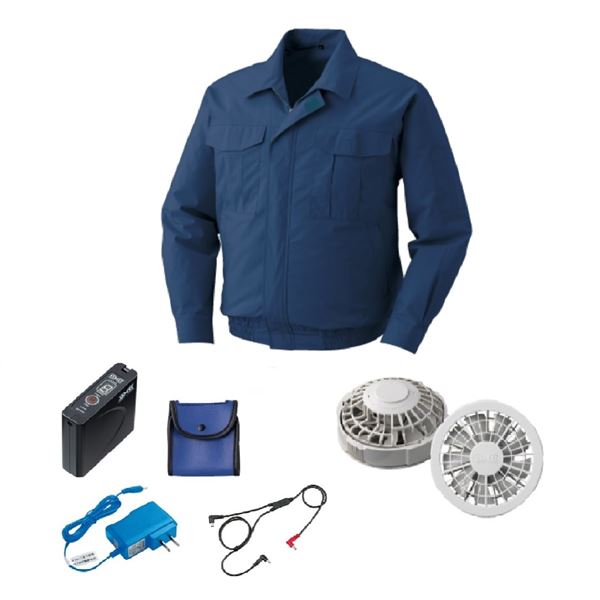 快適な夏を演出する 薄手の綿素材で涼しさ抜群の空調服 ダークブルーの鮮やかさが魅力 Sサイズでピッタリフィット FAN2200GとRD9261、LISUPER1のセットで一層の快適さを実現 青 KU90550 空調服 R 綿薄手 FAN2200G・RD9261・LISUPER1セット ダークブルー S 青