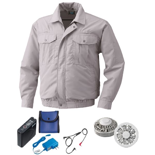 最新ポリエステル製空調服セットで快適度アップ 洗練されたシルバーデザインでスタイリッシュさ追求 大きなサイズで快適な着心地提供 KU9054F 空調服 R ポリエステル製 フルハーネス対応 FAN2200G・RD9261・LISUPER1セット シルバー L