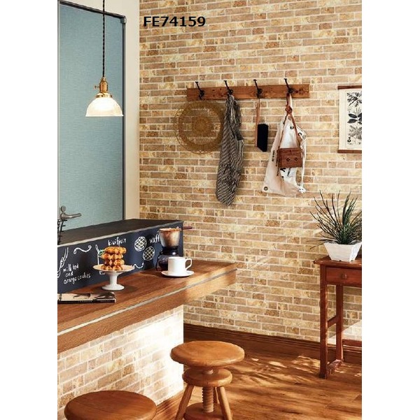 自由なペースで手軽に装飾できる、ノリ不要のレンガ風壁紙 FE74159、幅93cm、長さ25mの巻き売り レンガ調 のり無し 壁紙 FE74159 93cm巾 25m巻 日本製 国産 防カビ 清潔 ホルムアルデヒド対策品 糊無し ウォールペーパー