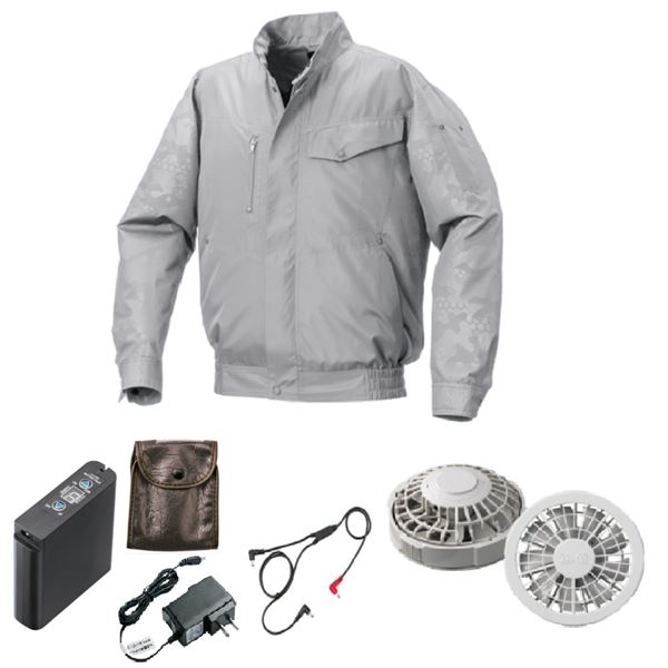 商品仕様: KU92000 空調服 R ポリエステル製 エンボスプリント FAN2200G・RD9261・LIPRO2セット グレー 灰色×グレー 灰色エンボス 5L