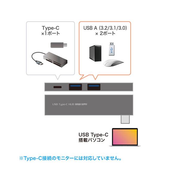 商品仕様: サンワサプライ USB Type-C 3ポートスリムハブ USB-3TCH22SN