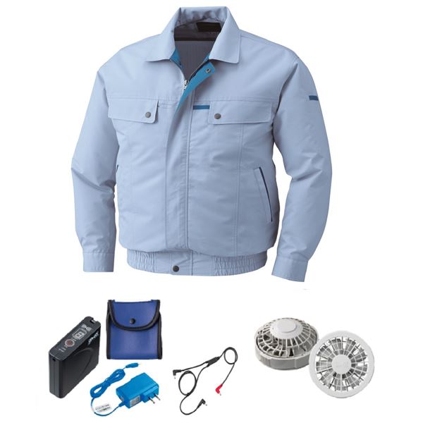 KU90450 空調服 R 綿・ポリ混紡 脇下マチ付き FAN2200G・RD9261・LISUPER1セット サックス M 送料無料