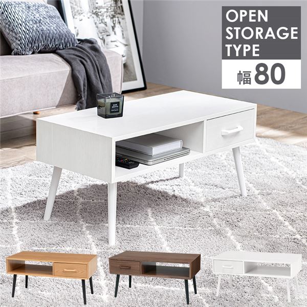 ローテーブル 机 低い ロータイプ センターテーブル センターテーブル 約幅80×奥行40×高さ40cm ホワイトウォッシュ 引き出し 木製脚付き 組立式 リビング ダイニング 白 送料無料