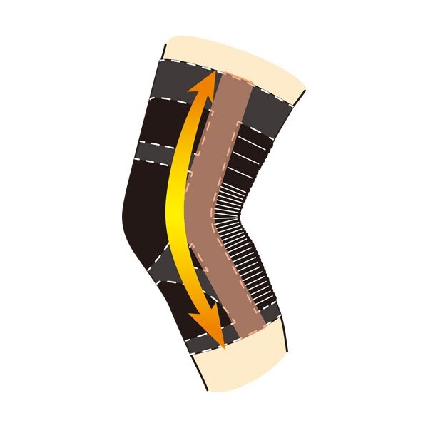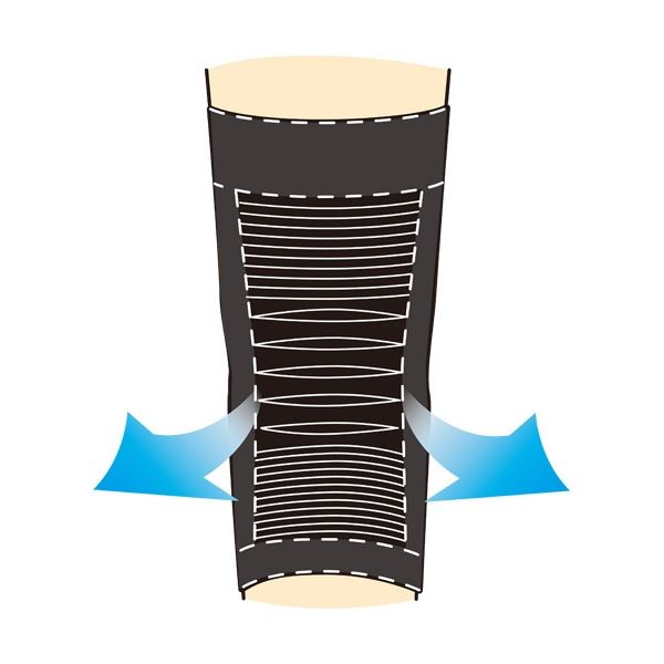 ●歩行を助ける!縦方向サポート構造。縦方向の強い編み方で筋肉の働きを補助し、ひざの曲げ伸ばしを助けます。