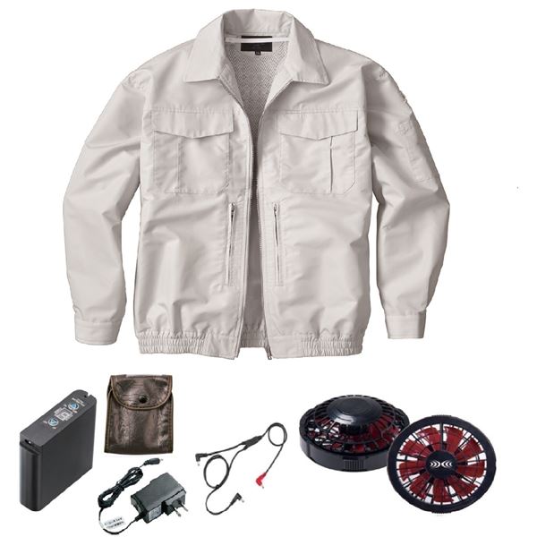 快適な空調を纏う、綿ポリ混紡のスペーサー一体型空調服 FAN2200BR・RD9261・LIPRO2セットで、シルバーの魅力をMサイズで KU92130 空調服 R 綿ポリ混紡 スペーサー一体型 FAN2200BR・RD9261・LIPRO2セット シルバー M