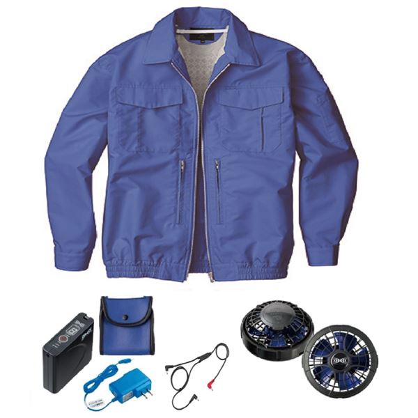 KU92130 空調服 R 綿ポリ混紡 スペーサー一体型 FAN2400SPBB・CBB500ロングケーブル 配線 ・LISUPER1セット ライトブルー 5L 青 送料無料