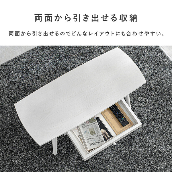 耐熱・耐傷性UV塗装で仕上げた、両側から開く引出し付きのスタイリッシュなセンターテーブル 机 ホワイトウォッシュの木製脚がアクセント 幅95×奥行40×高さ37cmのスクエア型で、お客様組立 リビングに最適な引き出し付きテーブル 白 センターテーブル ローテーブル 机 低い ロータイプ センターテーブル 約幅95×奥行40×高さ37cm ホワイトウォッシュ スクエア型 引き出し 木製脚付 お客様組立品 リビング 白