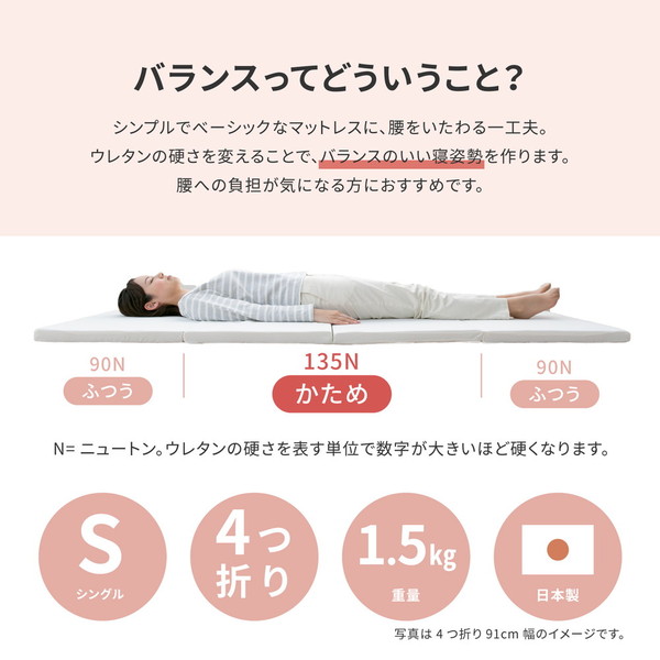マットレス 寝具 シングル 約91×192×5cm アイボリー 日本製 国産 バランスマットレス ベッドルーム 寝室 インテリア家具 乳白色 送料無料