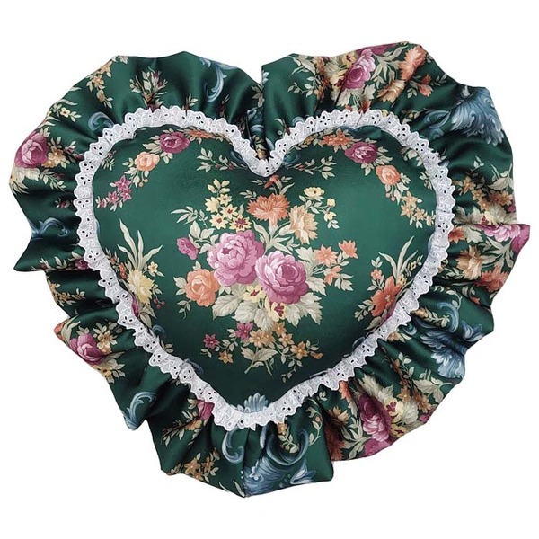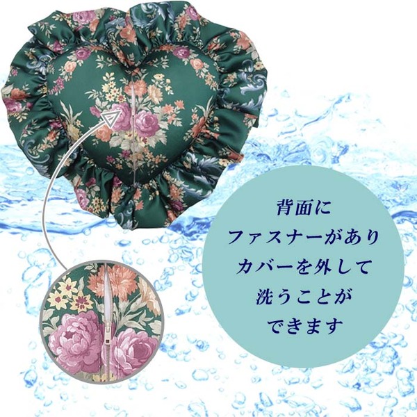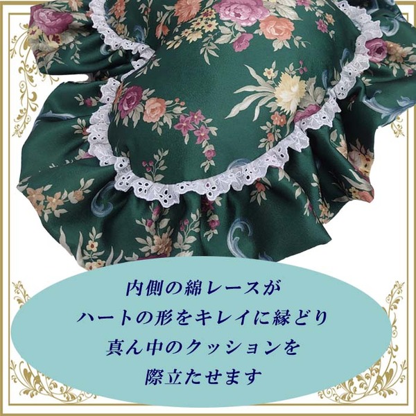 (キーワード: 高級 流行 デザイン おしゃれ オシャレ 耐久 清潔 機能 ふかふか TCC193004 RDA0001448118 4258684 インテリア 寝具 クッション ファブリック クッション 収納 座布団 エレガントな花模様のハートクッション ダブルフリル付き ハート型クッション 【グリーン ローズガーデン】 内部付き 花柄 日本製 国産 女性向け 緑)
