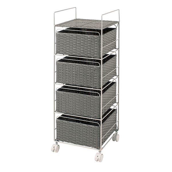 ランドリーラック 約幅30cm グレー キャスター付 移動可能 車輪付き き 金属 スチール フレーム 取っ手付き 樹脂製 組立式 脱衣所 洗面所 送料無料