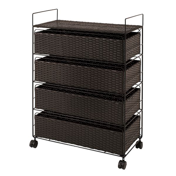 ランドリーラック 約幅60cm ダークブラウン キャスター付 移動可能 車輪付き き 金属 スチール フレーム 取っ手付き 樹脂製 組立式 脱衣所 洗面所 茶 送料無料