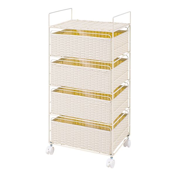 ランドリーラック 約幅40cm ホワイト キャスター付 移動可能 車輪付き き 金属 スチール フレーム 取っ手付き 樹脂製 組立式 脱衣所 洗面所 白 送料無料