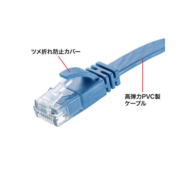 (キーワード: TCC305290 RDA0003617208 4293395 パソコン PC周辺機器 PCケーブル LANケーブル 周辺機器 PCアクセサリー ケーブル 高い弾力性を持つPVC製ケーブル 配線 で、ツメが折れにくくなった 驚きのカバー付き のカテゴリ6AフラットLANケーブル
