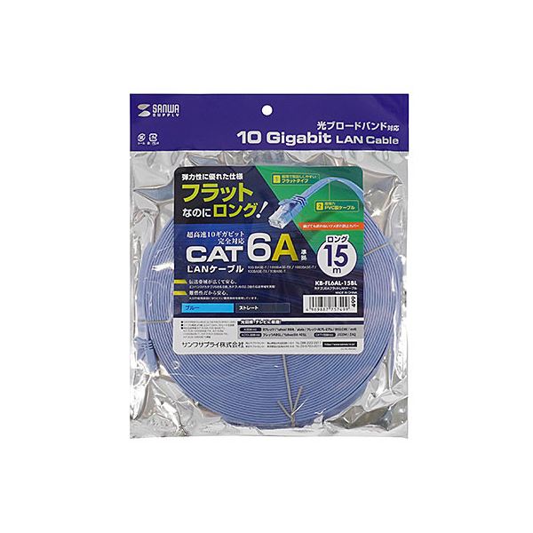 商品仕様: サンワサプライ カテゴリ6AフラットLANケーブル 15m ブルー 青 KB-FL6AL-15BL