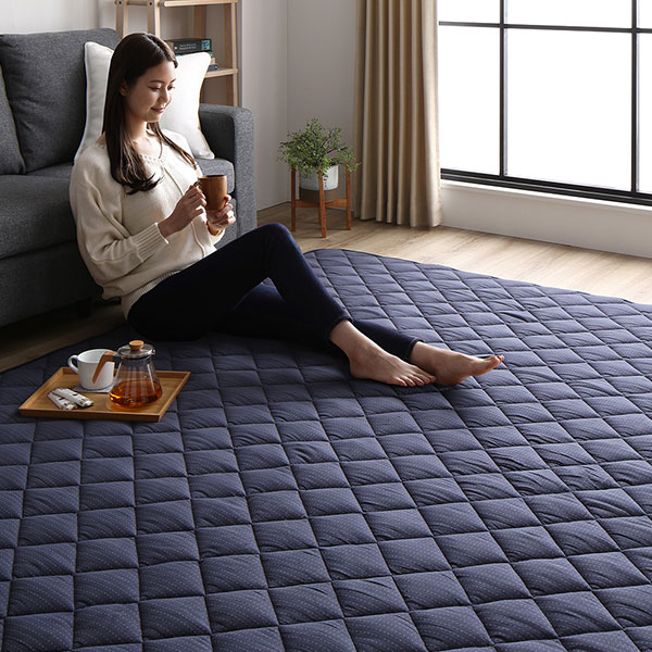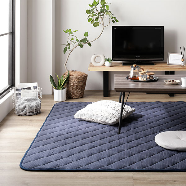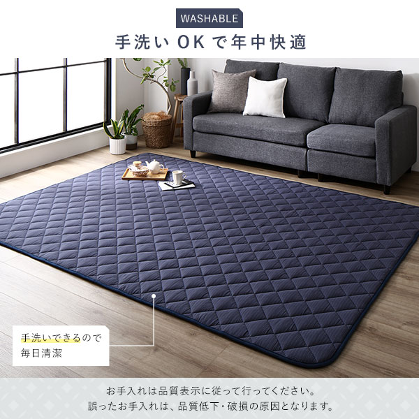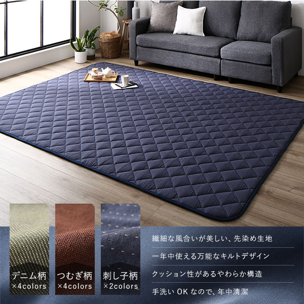 こたつ敷布団 キルト ラグ マット 約190×240cm 長方形 デニム生地 ネイビー 洗える ウォッシャブル 綿100% 床暖房可 防滑 送料無料