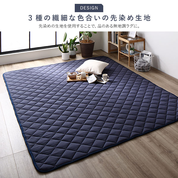 商品仕様: こたつ敷布団 キルト ラグ マット 約190×240cm 長方形 デニム生地 ネイビー 洗える 綿100% 床暖房可 防滑