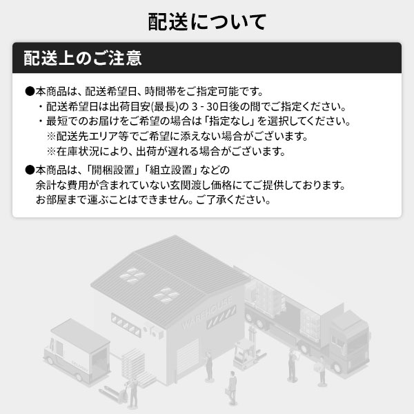 ※時間指定は到着予定を保証するものではございません。交通状況や配送会社の都合によりご依頼通りに配送ができな場合がございます。