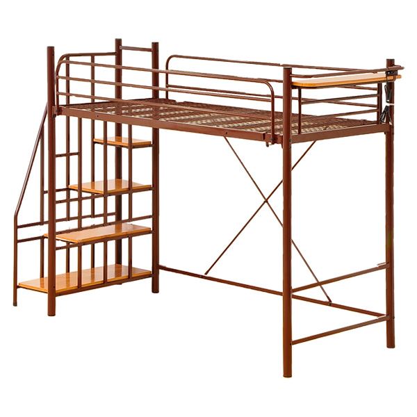 シングルベッド 茶色 ブラウン 茶 ロフトベッド 約幅255cm 茶色 ブラウン 茶 階段付き ベッドフレーム 北欧インテリア お客様組立品 ベッドルーム 子供部屋 一人暮らし、狭いお部屋に最適。省スペースでお部屋の空間を有効活用しましょう。搬入経路が心配なお部屋にもお勧め。 金属 スチール パイプ製ロフトベッド シングルサイズ ブラウンカラー 高さ調整可能な2口コンセントと宮棚付き (置き台 置き場付き) 、北欧インテリアのベッドフレーム 広々とした約255cmの幅で、階段付きのお客様組立 子供部屋やベッドルームに最適