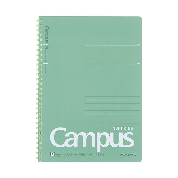 ドット入り罫線が特徴のセミB5サイズのキャンパスソフトリングノート、グリーンカラーのスタイリッシュなスタイル セットでお得な5冊入りで、使い勝手も抜群 書きやすさと持ち運びの便利さを兼ね備えた、あなたのアイデアを広げるパートナー 緑 コクヨ キャンパスソフトリングノート(ドット入り罫線 カットオフ) セミB5 B罫 40枚 グリーン ス-S111BT-G1セット(5冊) 緑