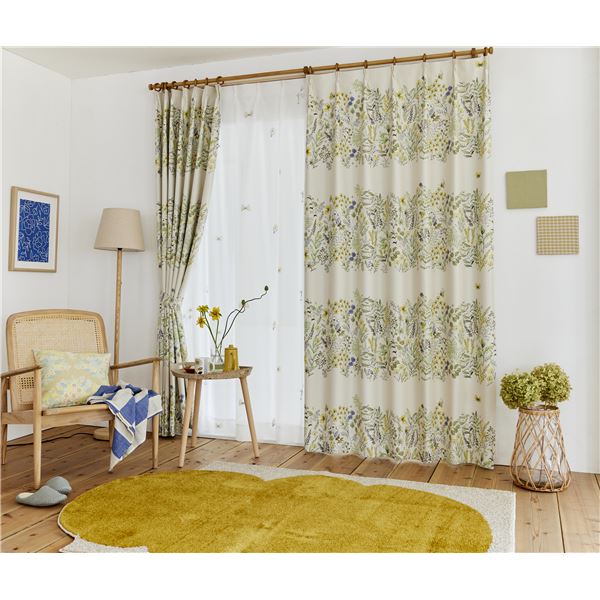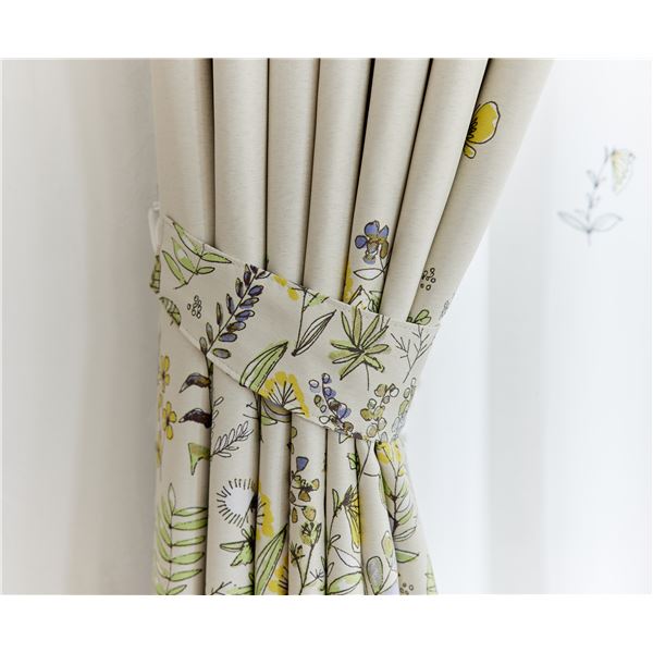 商品仕様: 遮光 カーテン 約幅100×丈178cm ミチクサ ベージュ 1枚入 2級遮光 タッセル付 形状記憶加工 日本製 デザインライフ