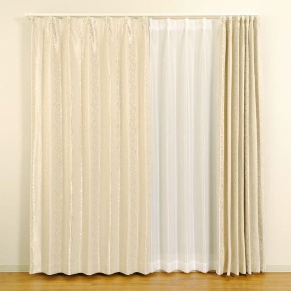商品仕様: 遮光 カーテン 約幅100cm×長さ178cm×2枚セット アイボリー 乳白色 唐草柄 3級遮光 洗える 形状記憶 タッセル付き 遮光カーテン