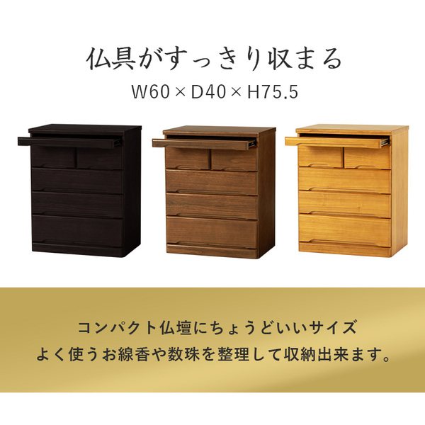 (キーワード: 整理 整頓 容量 収納 格納 収容 ラック 棚 シェルフ 台 デザイン オシャレ おしゃれ ラック タンス 整理ダンス たんす 箪笥 チェスト 便利 簡単 埃 対策 TCC638714 RDA0002809079 4714684 インテリア 寝具 収納家具 タンス チェスト タンス チェスト 収納 コンパクトな引出し付き整理 収納 棚でスペースを有効活用 木製の仏壇チェスト タンス キャビネット は幅60×奥行40×高さ75.5cmのナチュラルカラーでリビングや仏間にぴったり スライドテーブル 机 付きで使いやすく、整理 収納 力も抜群 お仏壇や仏具を美しく整理 収納 できる便利アイテム)