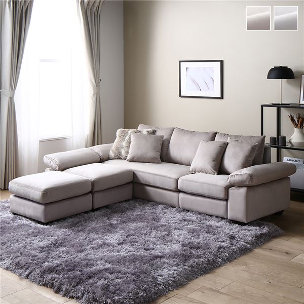 (キーワード: 高級 豪華 流行 くつろぎ 安らぎ リラックス ソファ ソファー リビング 応接 応接間 TCC535098 RDA0003589187 4713999 インテリア 寝具 ソファ ソファベッド ソファ 収納 ベッド 自由な配置が可能な、高級感溢れるベルベット調生地を使用したロー脚6cmのカウチソファー ベージュカラーのファブリック素材で、ミニクッション3個付き カバーリング仕様でお客様お客様組立 豪華
