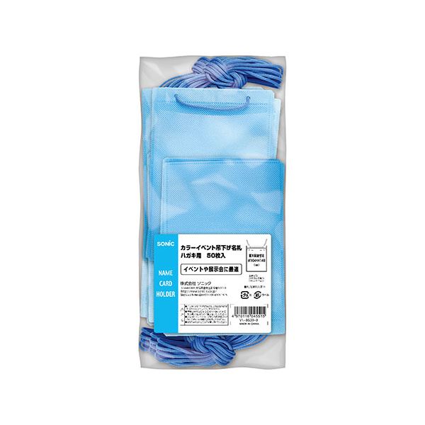 ソニック SONiC カラーイベント吊下げ名札 ハガキ用 50枚入 青 VN-8539-B 一目でわかる イベント&展示会に最適 カラフルな名札で華やかに演出 ハガキサイズ50枚入り ブルーで目立つ 色分けソリューション 送料無料