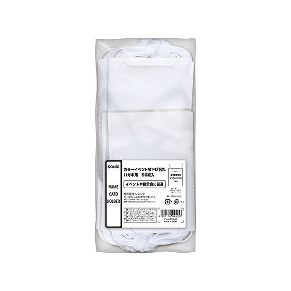 ソニック SONiC カラーイベント吊下げ名札 ハガキ用 50枚入 白 VN-8539-W 一目でわかる イベント&展示会に最適 カラフルな名札で華やかに演出 ハガキ用50枚入り 白い紙に彩りを添える 送料無料