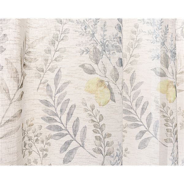 ポリエステル100%の麻調ボイルに、深みのあるタッチで描かれたレモンが目を引くデザインです。
