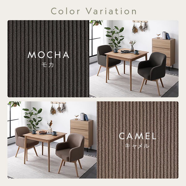 ■3点セット(ダイニングテーブル幅80cm+AND+回転チェア2脚) 回転チェア:キャメル
