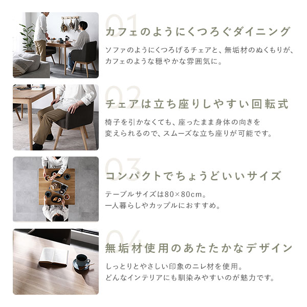※このページは3点セット(テーブル80×80cm+回転式チェア2脚)の販売ページになります。