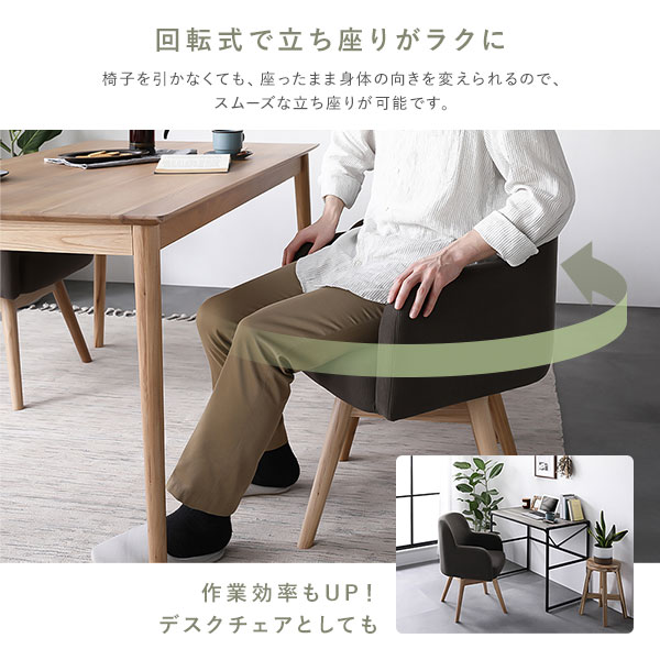 ■5点セット(ダイニングテーブル幅140cm+AND+回転チェア4脚) 回転チェア:モカ