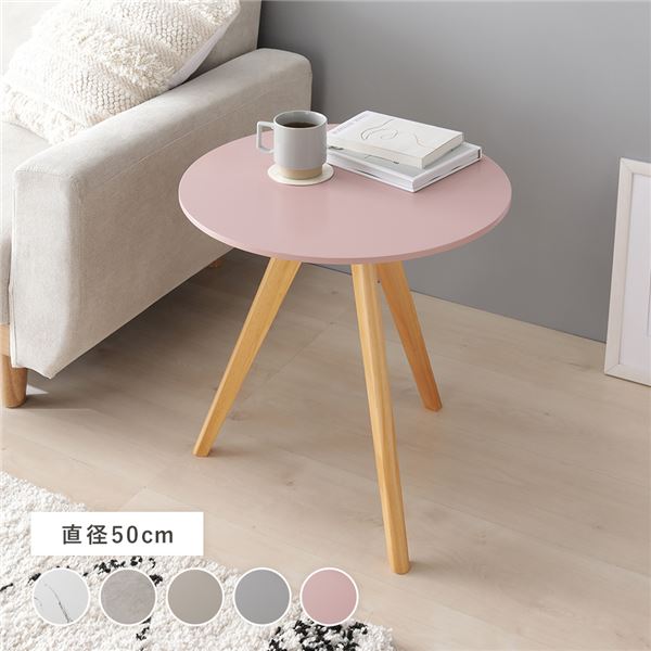 ラウンド サイドテーブル エンドテーブル コーナーテーブル 小型 脇台 机 約幅50cm ピンク 天然木 木製 軽量 ナイトテーブル ソファテーブル リビング ダイニング