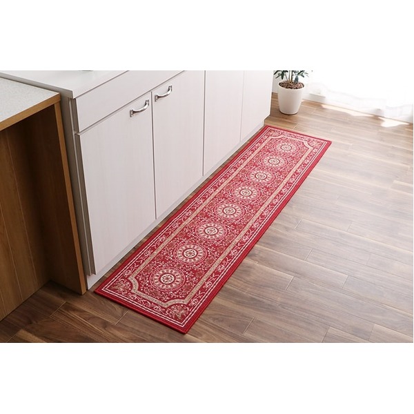 滑りにくくて撥水効果もある、エレガントな柄のキッチンマット 台所用 ワインカラーでおしゃれな空間を演出 サイズは約44×120cmで、キッチン を広々と彩る 滑りにくくて撥水効果もある、エレガントな柄のキッチンマット 台所用 ワインカラーでおしゃれな空間を演出 サイズは約44×120cmで、キッチン を広々と彩る