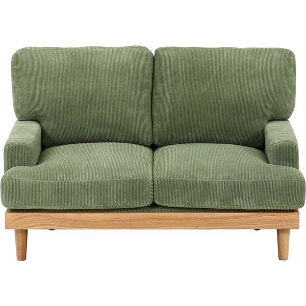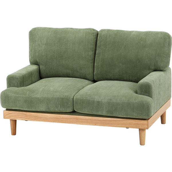 グリーンの魅力溢れる2人掛け組立式ソファ、柔らかな触り心地のコーデュロイで贅沢なくつろぎを提供 緑 コーデュロイソファ 2P GR グリーン 組立式 緑