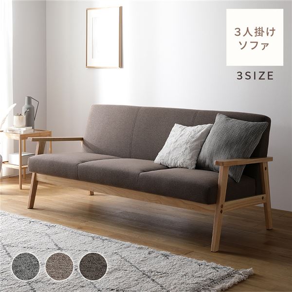 商品仕様: ソファ 3人掛け モカブラウン 茶 天然木 木肘 肘付き インテリア家具 リビング家具