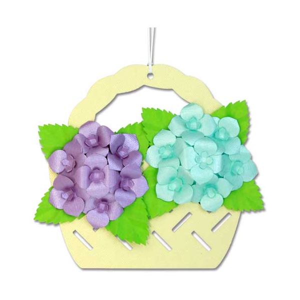 立体的な花かごの中に咲く美しい紫陽花を切り絵で表現した、花かご飾りキットが2セット入ったセットです