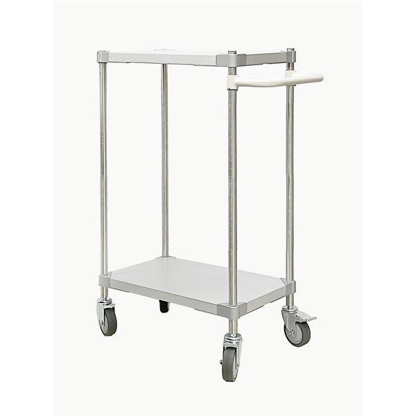 ホワイトカラーの2段階段式シェルフ 整理 収納 棚 キャビネット ワゴン、幅35cm×奥行60cm、高さ900mmのポール付き、取っ手付き、組立式商品 白 ガルバシェルフ 整理 収納 棚 キャビネット ワゴン 35×60cm 2段 ポール 900 ホワイト 取っ手付き 日本製 国産 キャスター付 移動可能 車輪付き き ガルバ シェルフ ワゴン 組立式 白