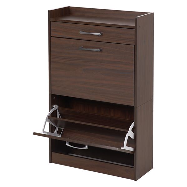 シューズラック 下駄箱 約幅62×奥行24×高さ99cm ブラウン フラップ式扉 引き出し付き 大容量 大型 お客様組立品 玄関 エントランス 茶 送料無料