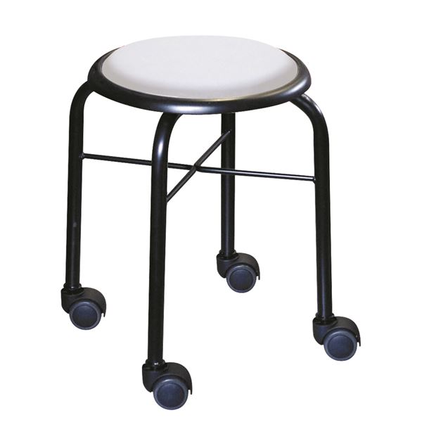便利な移動式チェア (イス 椅子) 日本製 国産 金属 スチール パイプのスタッキングチェア /丸椅子 (イス チェア) 【同色4脚セット ホワイト×ブラック】幅32cm 作業・仕事・家事に最適 車輪付きで楽々移動 白 黒 スタッキングチェア (イス 椅子) /丸椅子 (イス チェア) 【同色4脚セット ホワイト×ブラック】 幅32cm 日本製 国産 金属 スチール パイプ 白 黒