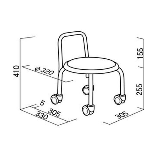 ●背もたれバーの付いたローキャスタースツール