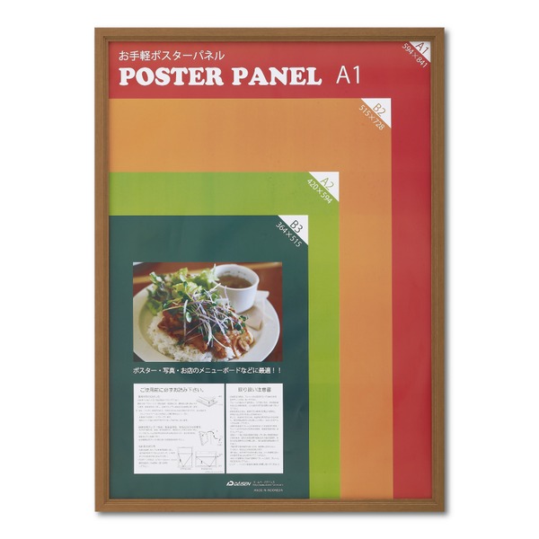 (キーワード: 流行 デザイン オシャレ おしゃれ 耐久 便利 簡単 埃 清潔 対策 整理 整頓 容量 収納 格納 収容 作業着 作業 従業員 事務 事務所 事務員 仕事 仕事場 職場 省スペース 効率 機能 遮断 仕切り 間仕切り TCC595631 RDA0001448258 4835683 インテリア 寝具 オフィス家具 パネル パーテーション 収納 自然の温もりを感じる、軽量で安全 安心 な素材を使用した木製ポスターパネル A1サイズ(594×841mm)のチーク仕上げで、上質な雰囲気を演出 インテリアに調和し、魅力的な空間を創り出すアイテムです)