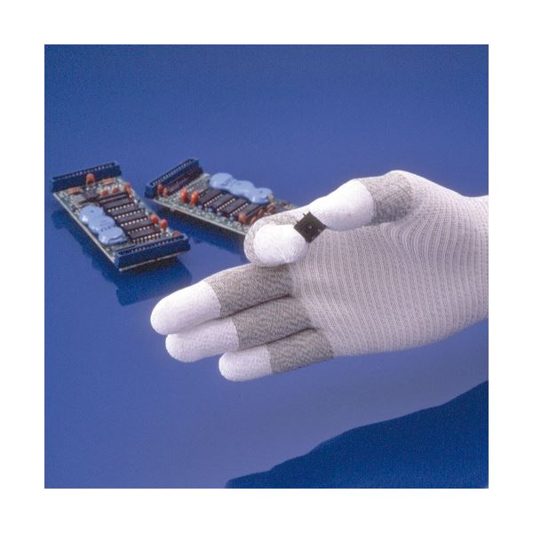 指全体を導電糸のみで編み上げた静電気対策用指先スベリ止め手袋[簡易包装]