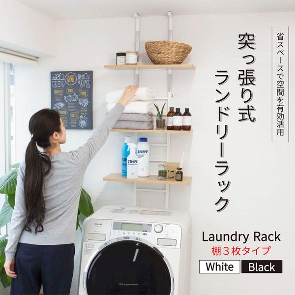 突っ張り式 洗濯機ラック/ランドリー整理 収納 【棚3枚type ホワイト】 幅55cm 金属 スチール フレーム 【お客様組立品】 白 送料無料